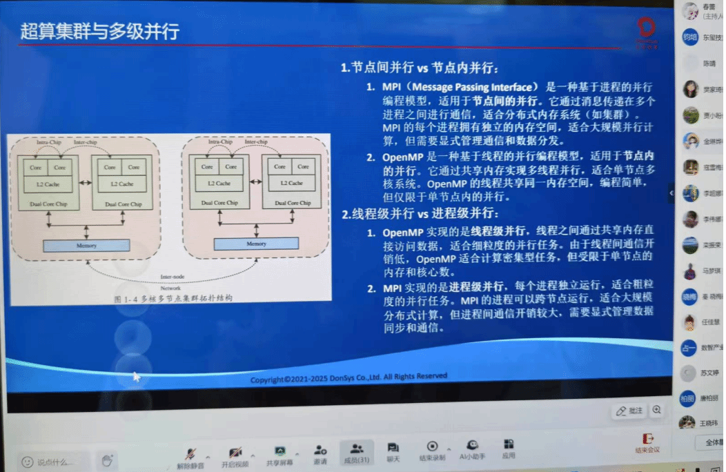 3月22日上午,第二场讲座以“超级计算仿真平台技术解析与应用实践”为主题,面向数智产业学院、网络与空间安全学院、网络与通信学院教师展开。东玺技术有限公司秦晓梅博士从平台技术架构、资源调度机制等基础理论切入,结合人工智能、大数据等前沿领域,详细解析了平台的实践价值: