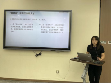 研讨会上,杨静宜主任从专业概况、专业特色、专业亮点和成果展示四方面阐述了人工智能专业的办学定位、专业定位、面向服务对象,通过增平台、聘专师、强技能的培养模式实现好就业的目的;胡媛媛主任从专业概况、专业培养目标、专业建设成果、专业综合改革、毕业生培养质量、下一步专业建设思路六方面进行了汇报;崔建弘主任从专业概况、人培特色、专业亮点和成果展示四方面阐述了“智能技术+产学研一体+优质师资”校企协同共创的人才培养模式;王诺主任围绕应用型人才培养定位、明确目标,特色立校、创新发展、统筹规划、分步实施,突出重点、协同发展四个方面汇报了大数据管理专业;冯婵主任从“双精准”育人模式、课程建设模式、校企合作培养模式来阐述区块链专业未来发展思路;沈娴主任从专业合作模式、本专业学生情况、参加竞赛及获奖情况、认知实习、参加虚拟现实相关会议五个方面进行了专业汇报。