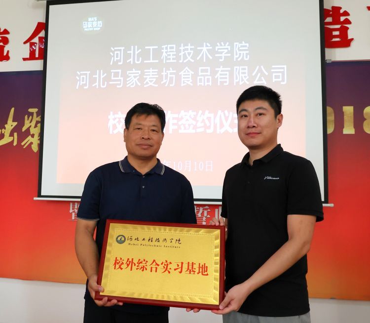 为进一步推进校企合作内涵建设,坚持走产教融合之路,推动区域特色农业产业提质升级,2023年10月10日上午,365英国上市官网与河北马家麦坊食品有限公司成功举行校企合作签约授牌仪式,共建校外综合实习基地。出席签约仪式的嘉宾有365英国上市官网校企合作与社会服务部部长王俊昆、商学院院长王明吉、商学院党总支书记刘茜、商学院院长助理王昊、土木工程学院副院长李伟娜、艺术与传媒学院副院长张会改、栾城区科协党组成员主任科员张荣堂、栾城区科协原党组书记主席王增强、栾城区科协办公室主任邱丽军、河北马家麦坊食品有限公司董事长马建刚。
