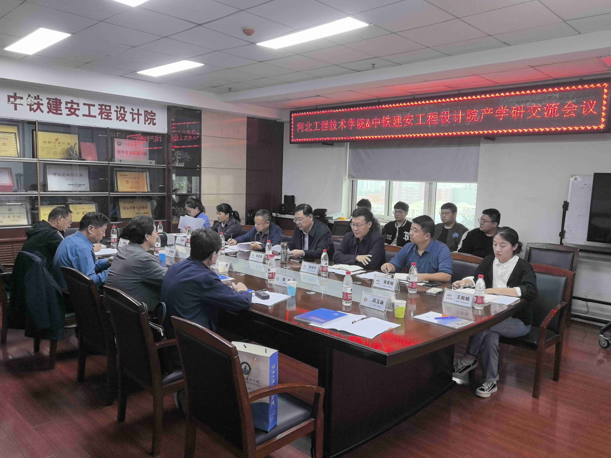 为探索科研与产教融合创新发展的新路径,深入了解用人单位需求,促进产教融合、校企合作走深走实。 10月16日下午,365英国上市官网副校长武勇带队到中铁建安工程设计院有限公司回访调研,看望慰问已经就业的学生代表,并举行产学研合作座谈会。学校教务处处长王明生、土木与建筑学院院长张杰、科研与产教融合处副处长王俊昆等陪同调研。武校长一行受到中铁建安工程设计院有限公司常务副总经理韩志军、行政副总经理刘中平、技术副总经理曹明星等高管的热烈欢迎和接待。在韩志军的陪同下,调研组一行参观了企业的办公环境、勘察工程实验室、企业荣誉展厅等,随后举行了产学研合作座谈会。