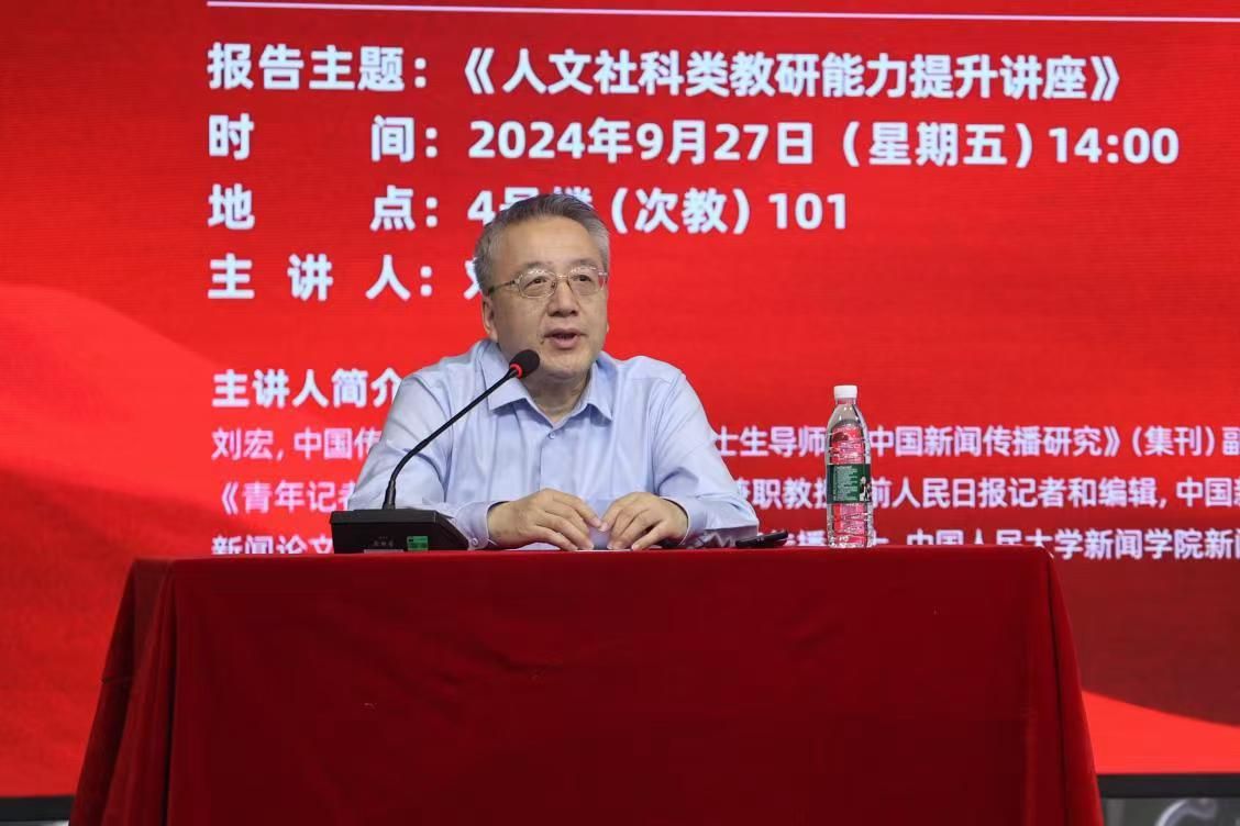 9月27日,艺术与传媒学院邀请中国传媒大学电视学院教授、博士生导师刘宏莅临学院,于启行楼101教室,带来题为《人文社科类教研能力提升》的专题讲座,师生代表共同参与。