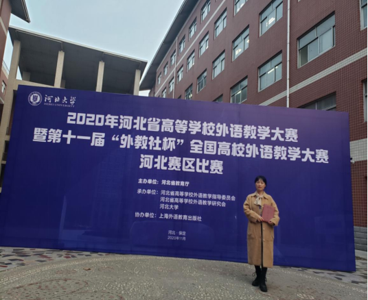 我是土木工程学院通识教研室英语教师牛晓静,在2020年度由河北省教育厅主办,河北省高等学校外语教学指导委员会等承办的第十一届“外教社杯”全国高校外语教学大赛”河北赛区“大学英语综合组”比赛中荣获三等奖。本次比赛使我受益颇多,各参赛选手在大赛中展示的扎实的教学基本功、高超的教学技能,多样的教学方法,多元的教学模式,都充分展现了外语教师的智慧才华和风采。我会把本次比赛中的收获和心得应用于今后的实践教学和课程建设,潜心学习,争取再创佳绩。