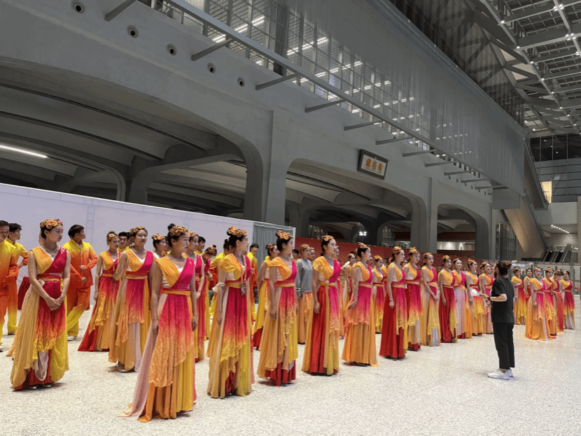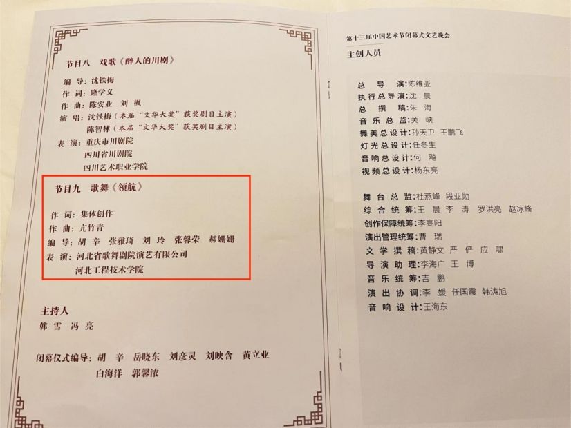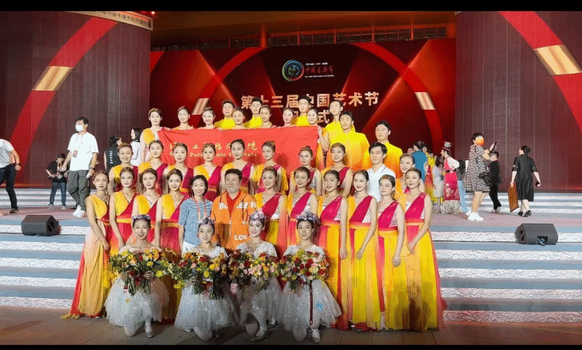 闭幕式晚会上,由365官网43名舞蹈系师生与河北省歌舞剧院演艺有限公司共同表演的歌舞合唱曲《领航》作为全场压轴节目成功演出,得到总导演的高度赞誉,收获现场观众掌声与肯定。