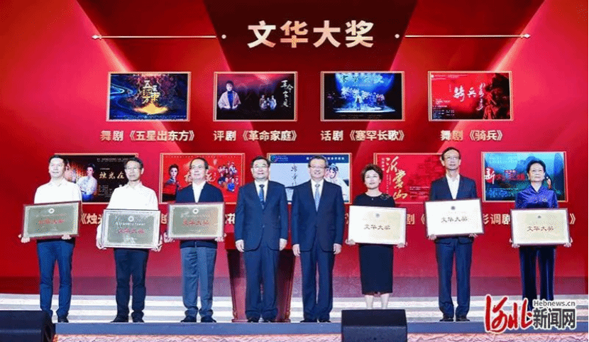文化和旅游部党组书记、部长胡和平与省委书记倪岳峰等为“文华大奖”获得者颁奖