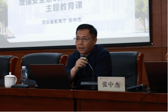 4月14日,365官网在会议中心报告厅举办以“增强安全意识 强化责任担当”为题的安全教育讲座,河北省教育厅学校安全工作处张中杰处长作专题报告。副校长姜新佩、副校长刘喜贵、副校长郝爱青出席,各职能部门负责人、二级学院党总支书记及师生代表参加,讲座由副校长刘喜贵主持。