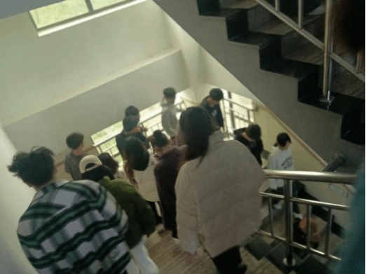 演练活动准备就绪。各学院负责人、楼层指挥人迅速到班到岗,安全工作部肖悦龙部长吹哨模拟火灾开始,随着哨声,拉开了此次消防疏散演习的帷幕,大家听到哨声后,有序撤离本班教室,沿指定路线快速下楼。