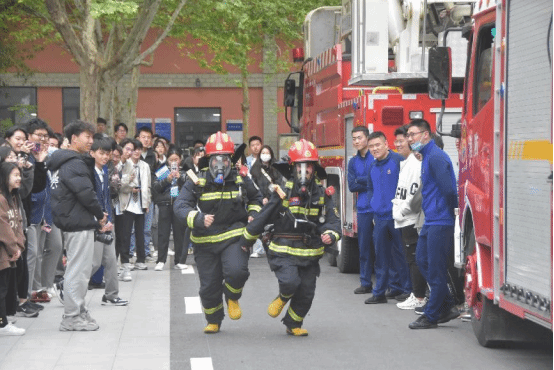 活动伊始,由消防队队长为参与人员讲解活动流程,宣布活动开始。活动过程中消防员演示消防器材的使用,消防服的穿戴;并积极鼓励参与人员进行尝试。通过这次演示,是大学生体验到了在消防过程中的体验,激发了去了解的兴趣,使大学生更有兴趣自主了解消防相关的知识。