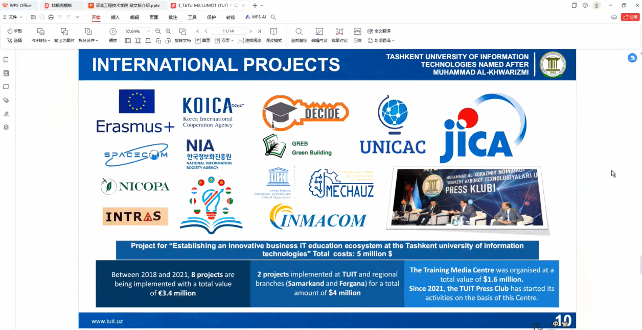 塔什干信息科技大学校方代表Ibrohimbek Yusupov也对该校的基本概况和国际交流合作项目的开展情况进行了详细介绍。