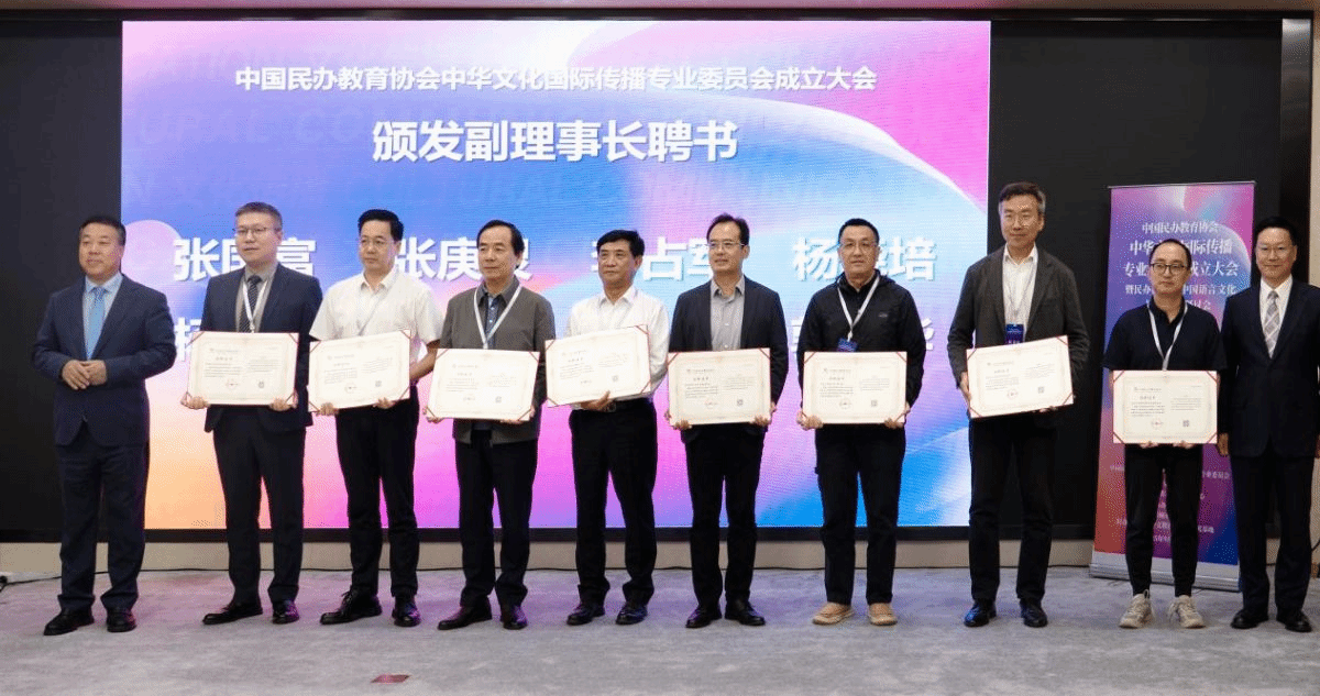 本次大会由中国民办教育协会中华文化国际传播专业委员会主办,教育部中外语言交流合作中心支持,北京城市学院及民办高校国际中文教育实践与研究基地承办,旨在搭建民办教育参与中华文化国际传播的合作平台,凝聚各方力量推动教育对外开放与文化强国建设。会上,李连宁名誉会长宣读了《关于同意成立中国民办教育协会中华文化国际传播专业委员会的批复》,并授专委会铭牌,刘林会长为新任副理事长颁发证书,武勇副校长接受聘书。