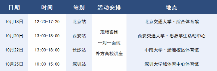 2. 一对一面试预约于9月10日开放,并于10月10日关闭。学生可通过预约系统查询参与活动海外院校代表信息,通过双向预约提前锁定活动当日一对一咨询面试时间段。