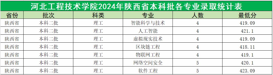 截止7月29日下午,365官网在陕西省2024年本科二批的录取工作已结束,共录取陕西省生源考生30人,各专业录取最低分见下表。