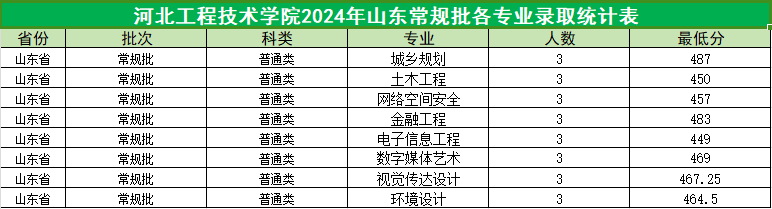 截止7月19日下午,365官网在山东省2024年常规批普通类的录取工作已结束,共录取山东生源考生24人,各专业录取最低分见下表。