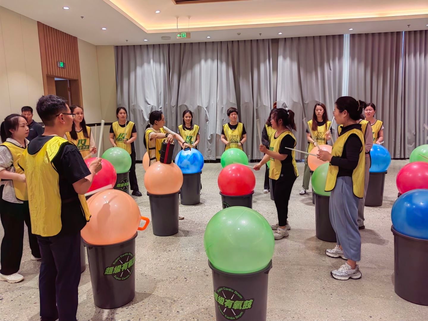 7月13日的素质拓展活动中,老师们在教练的带领下,开启了“破冰”之旅。几个轻松多样化小活动迅速点燃大家的热情,“动物王国”项目进一步增加了团队成员之间的协作力与默契度;“超级有氧鼓”活动又让老师们置身于音乐体验中,通过团队合作和集体表演,释放内心激情和活力。